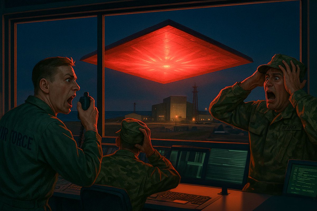 2. At Vandenberg that night, the base was hit by a sudden blackout just as a massive red square craft descended, glowing against the dark sky. According to Air Force Jeffrey Nuccetelli, the object hovered silently over the missile site, its presence heavy and deliberate, before shooting off at impossible speed toward the Pacific. Nuccetelli later blew the whistle, insisting the blackout and the craft’s arrival were directly connected. "Chaos ensued over the radio as the craft approached rapidly . It's coming right at us. It's coming right for us. And now it's right here." It hovered for 45 seconds over base then shot off.