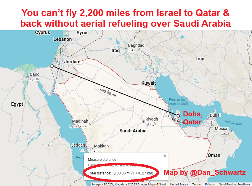 @CherylWroteIt & @DrEliDavid: More important is that Saudi Arabia was in on this 2,200 mile F-35I Adir bombing run with aerial refueling over KSA to take out the Hamas leaders in Doha…