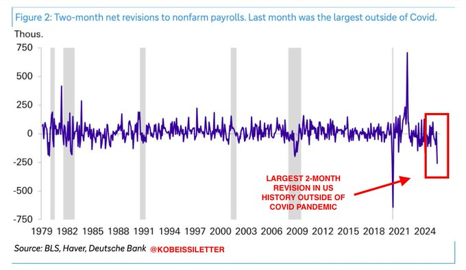 June 2025 was the first month in 4+ years to see a net loss of jobs after 2-consecutive monthly downward revisions. Image