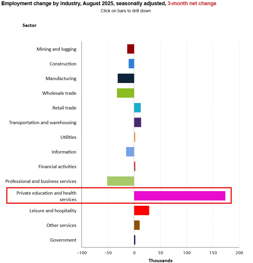In fact, the US Labor Market is entirely dependent on health care job gains.