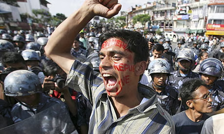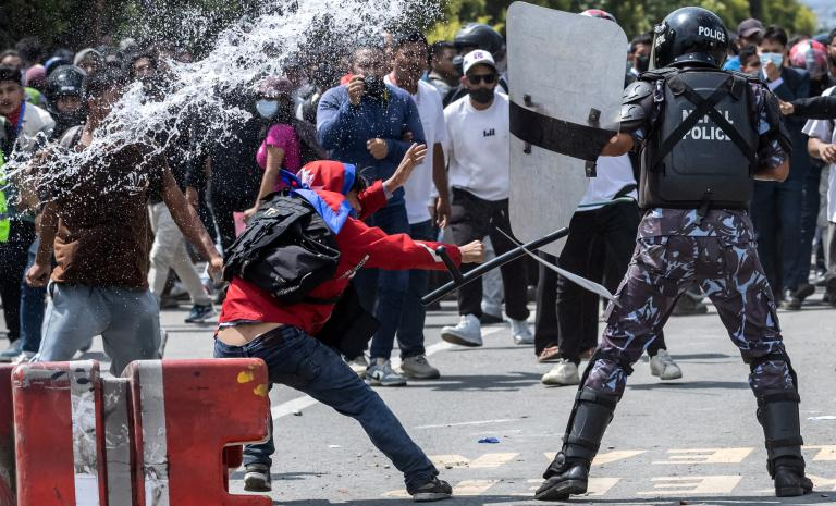 Las fuerzas de seguridad nepalíes respondieron con una masacre en toda regla. Gases lacrimógenos, cañón de agua, balas de goma y finalmente munición real. Se estima el número de muertos el primer día de las protestas fue de 16, mientras que se reportaron más de 300 heridos.
