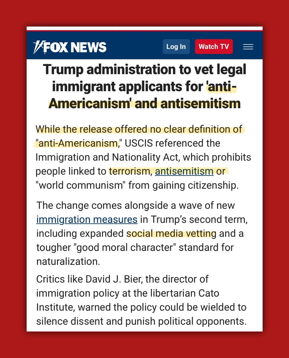 Trump instructed USCIS to vet all applicants for IHRA antisemitism which makes criticism of Israel, Antisemitic. They’re also using Project Esther’s correlation which EQUATES: