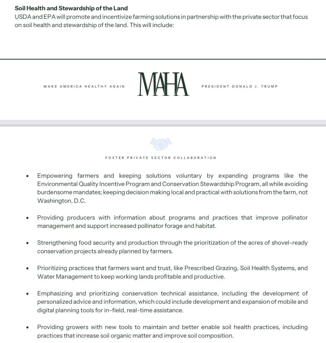 USDA and EPA will work with farmers on practices like prescribed grazing, water management, and soil health systems to keep working lands profitable and productive while protecting America’s food future.