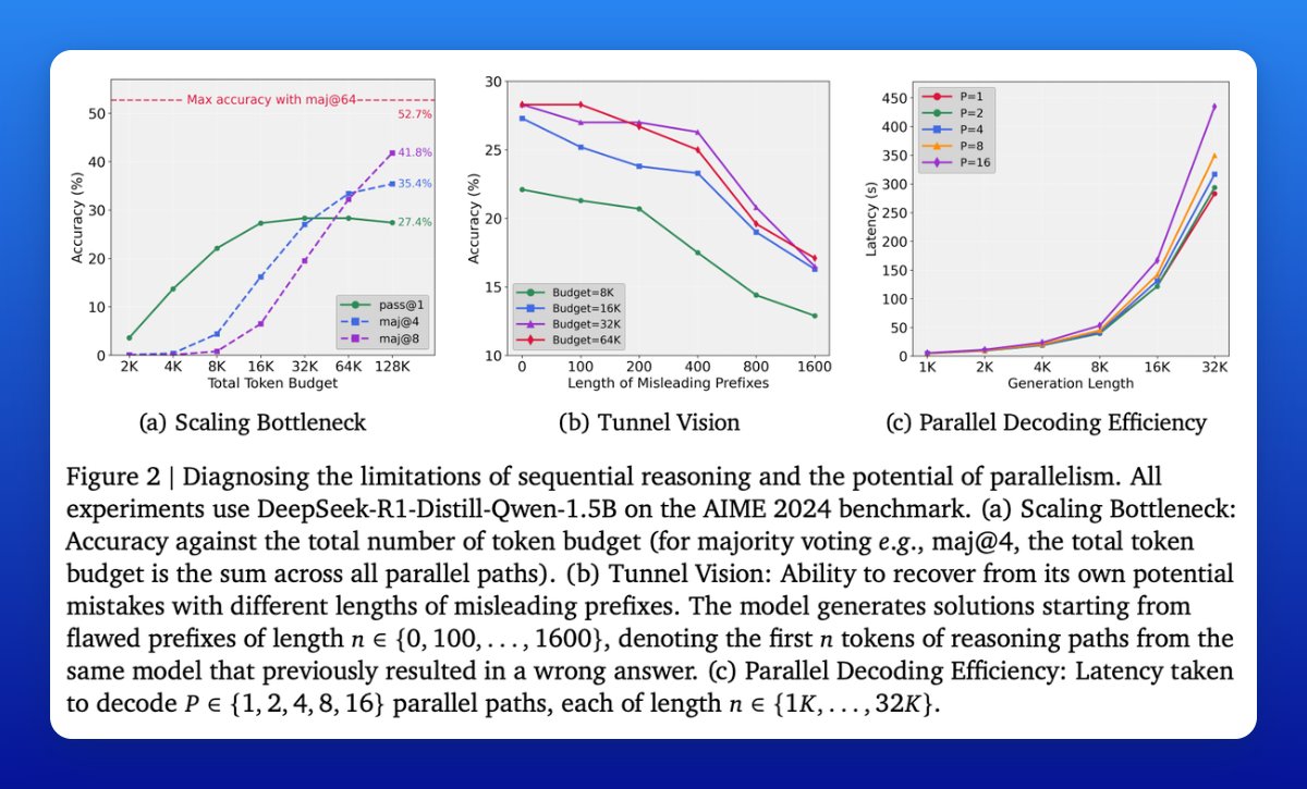 Instead of making the model think in one long chain of reasoning (which often gets stuck in early mistakes), they train it to explore multiple independent ideas at the same time (via parallel reasoning paths) and then merge them into a final answer.