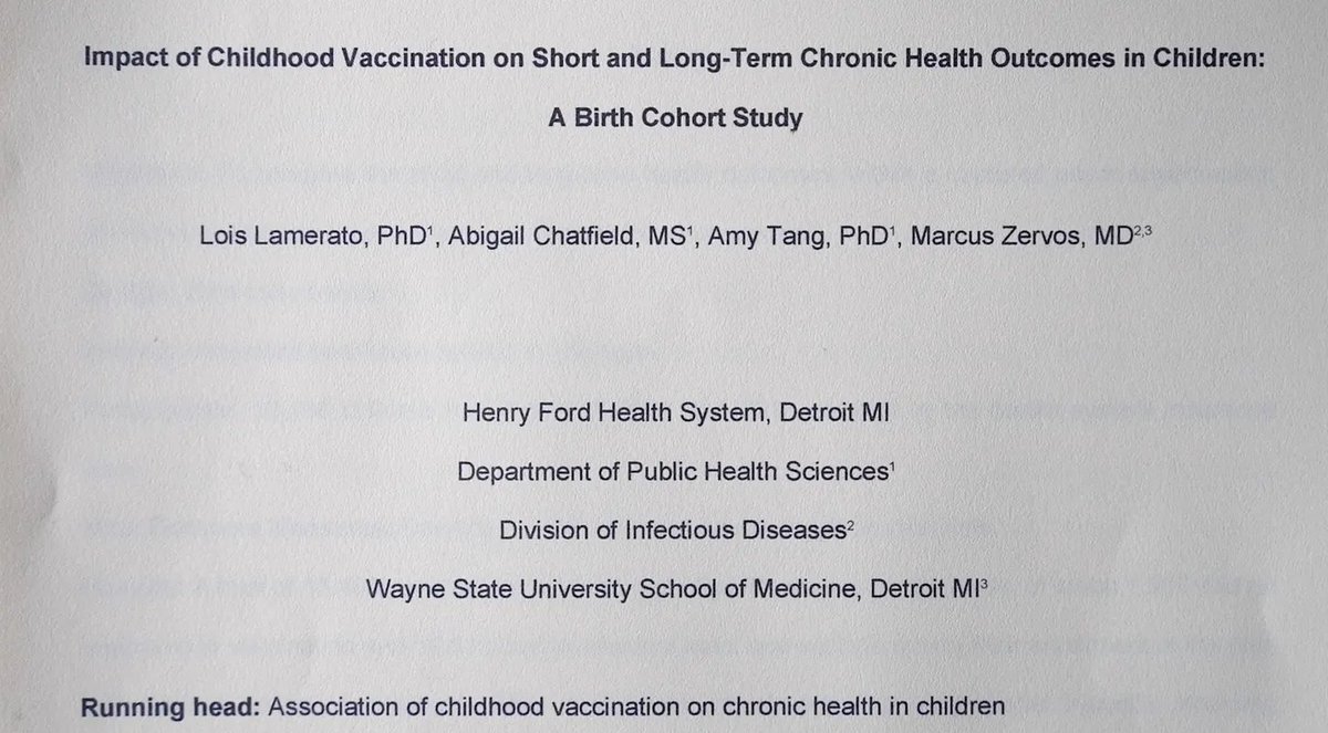 It was titled “Impact of Childhood Vaccination on Short and Long-Term Chronic Health Outcomes in Children: A Birth Cohort Study.”