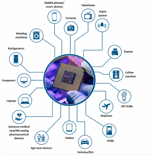 🔹Cars – used in engine control, safety systems (like airbags), and EV batteries.