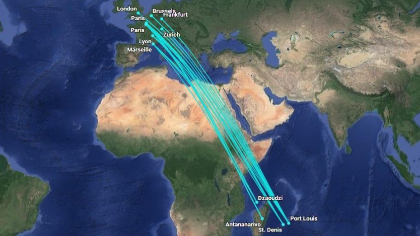 🇷🇪 Réunion connects to metropole 🇫🇷 airports of Marseille, Lyon, Paris Orly and Charles de Gaulle.