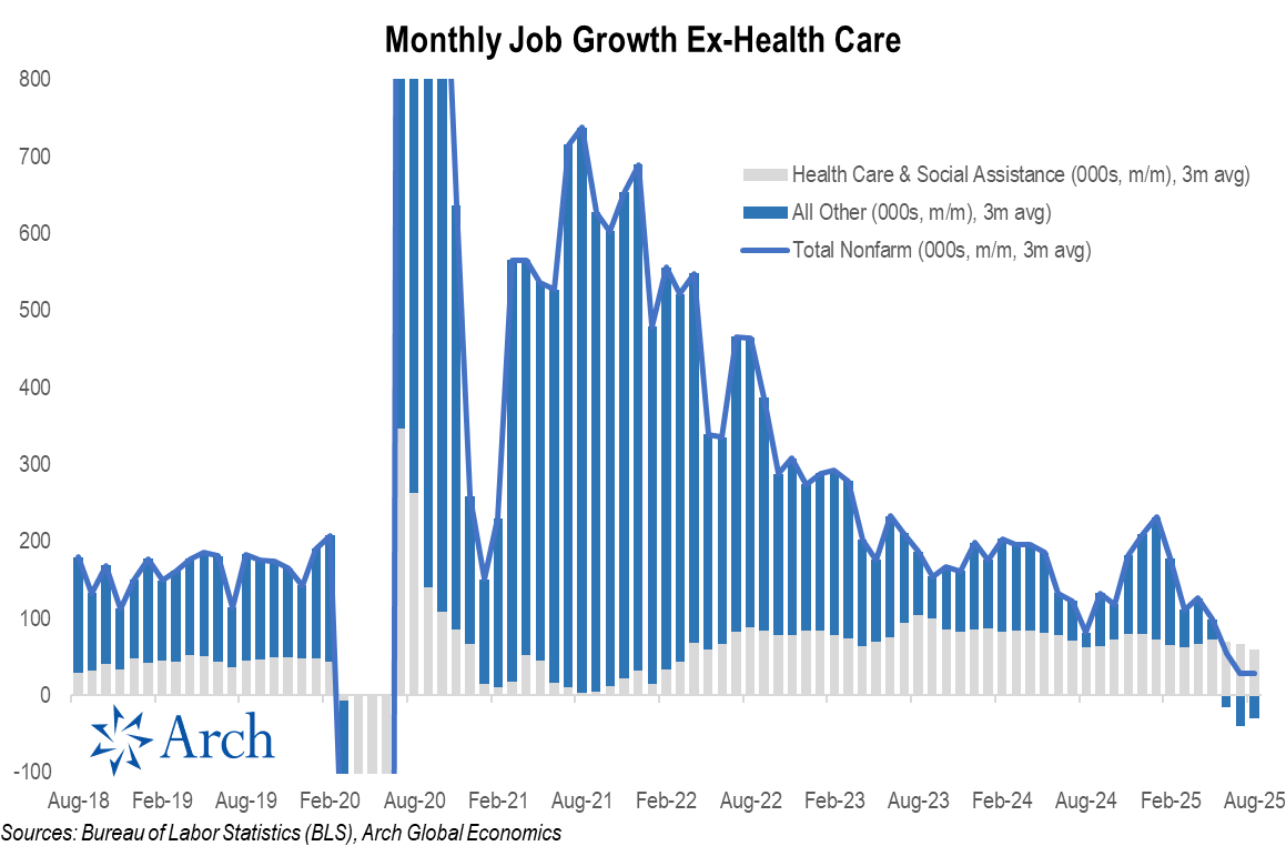 Here's a look at monthly job growth if we include the revised data and carry forward that monthly pace of negative revisions through August.