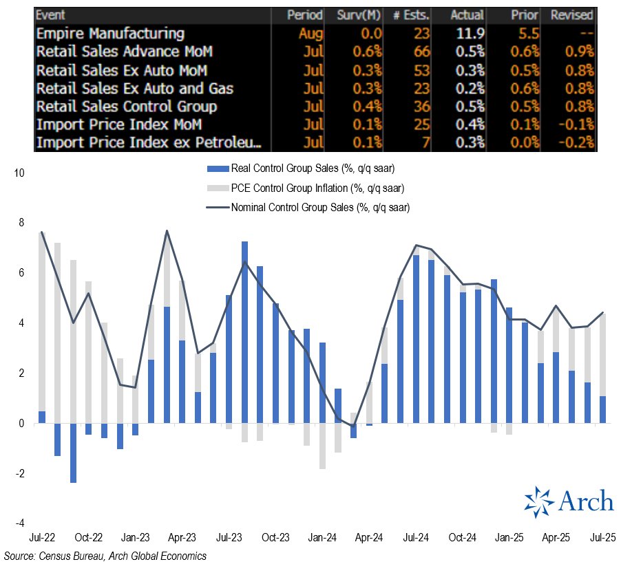 The latest PCE control group price index is not included in the retail sales report, so we have to estimate the latest inflation print based on this week’s CPI & PPI reports.