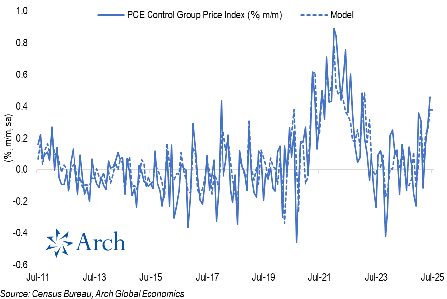 The PCE control-group deflator has firmed considerably over the course of 2025, so prices are doing more of the lifting.