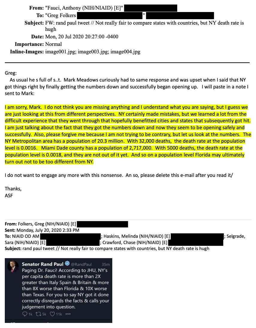 Freshly released emails expose another layer of the Fauci COVID Coverup. In April 2020, his staff flagged my post on NYC’s soaring death rate.