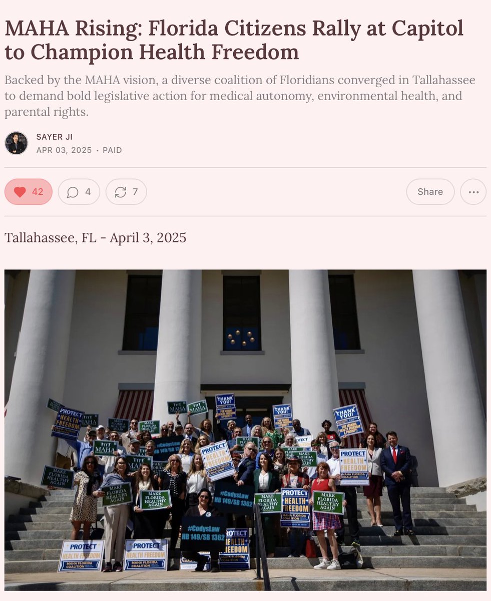 Learn about the recent, tremendous success of the grassroots movement in Florida, and how these coalition-borne wins are sweeping the nation: 🔗sayerji.substack.com/p/maha-rising-…