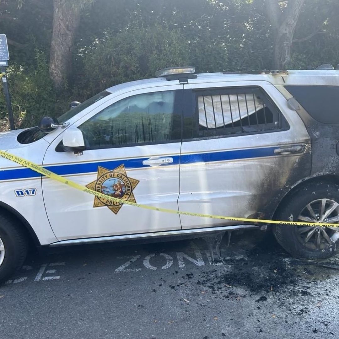 Days earlier, placed a bag containing six Molotov cocktails under the fuel tank of a marked UC Police Department patrol car at UC Berkeley, lit the bag on fire, and fled. The patrol car caught fire and was destroyed.