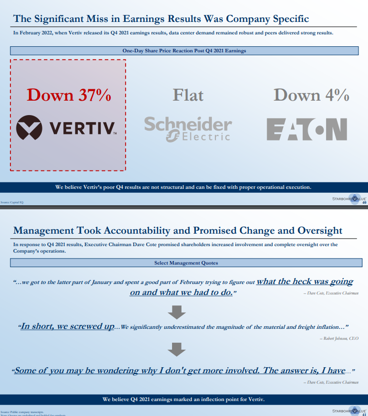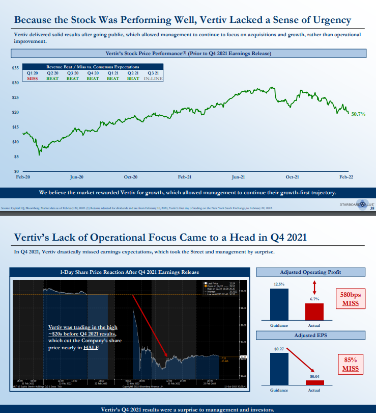 In Q4 2021, Vertiv drastically missed earnings expectations, which took the Street and management by surprise.