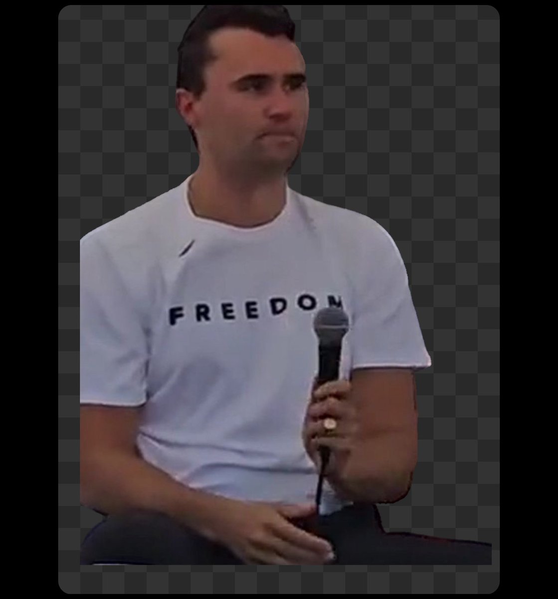 Another anomaly. I’ve removed the background from the images of Charlie Kirk seconds before he was assassinated. Why is they’re blood dripping down his left elbow and arm?