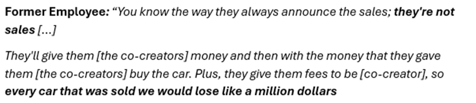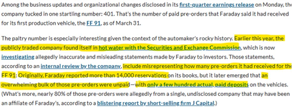 3/ Some of the other B2B preorders for the EV minivan are with “paid co-creation partners.” Former employees revealed to us that each of $FFAI's co-creator deals for its previous vehicle cost them something like a million dollars because they were paying the co-creator to buy the car.