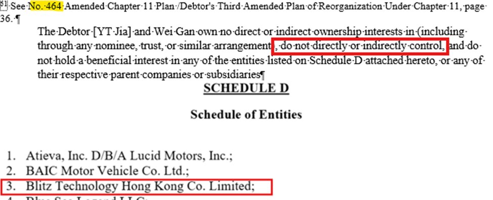 6/ The multi-million-dollar CA homes are peanuts compared to the shares of Lucid stock we believe YT hid from the bankruptcy court. We believe he committed bankruptcy fraud when he told the court in a 2020 filing that he had no interest in Blitz Technology Hong Kong Co. Ltd (“Blitz”). One month later, Blitz, controlled by a close associate of YT’s, transferred 4.5 million shares on his behalf to one of his creditors, and the creditor agreed to remain the creditor of record and discreetly work on YT’s behalf in resolving the bankruptcy. We calculate YT may have hidden Lucid stock from the court that ultimately became worth over $1 billion.