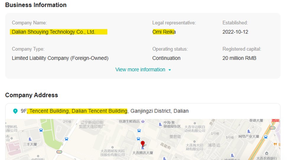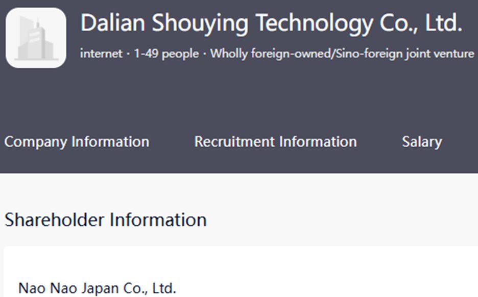 A former employee told us the CEO initially hid the identity of the mystery customer from his own staff. This former employee believed the CEO used NowNaw Japan (NNJ) to mask Chinese funding. Datasection has denied that NNJ is a related party, but Datasection’s CEO was an original director and promoter for NNJ. The former employee also pointed out that NNJ's Chinese subsidiary, Dalian Shouying Technology Co., Ltd., is based in Tencent's office in China.