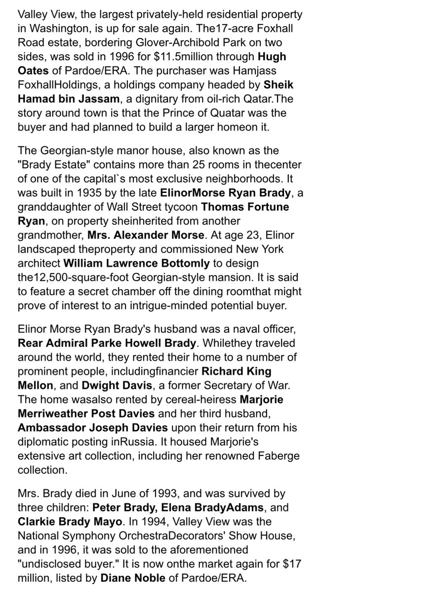 Brady, who is independently wealthy, is the son of the late heiress Elinor Ryan Brady, a socialite whose famed Washington estate, Valley View, was listed for sale in 1994 at $19 million.