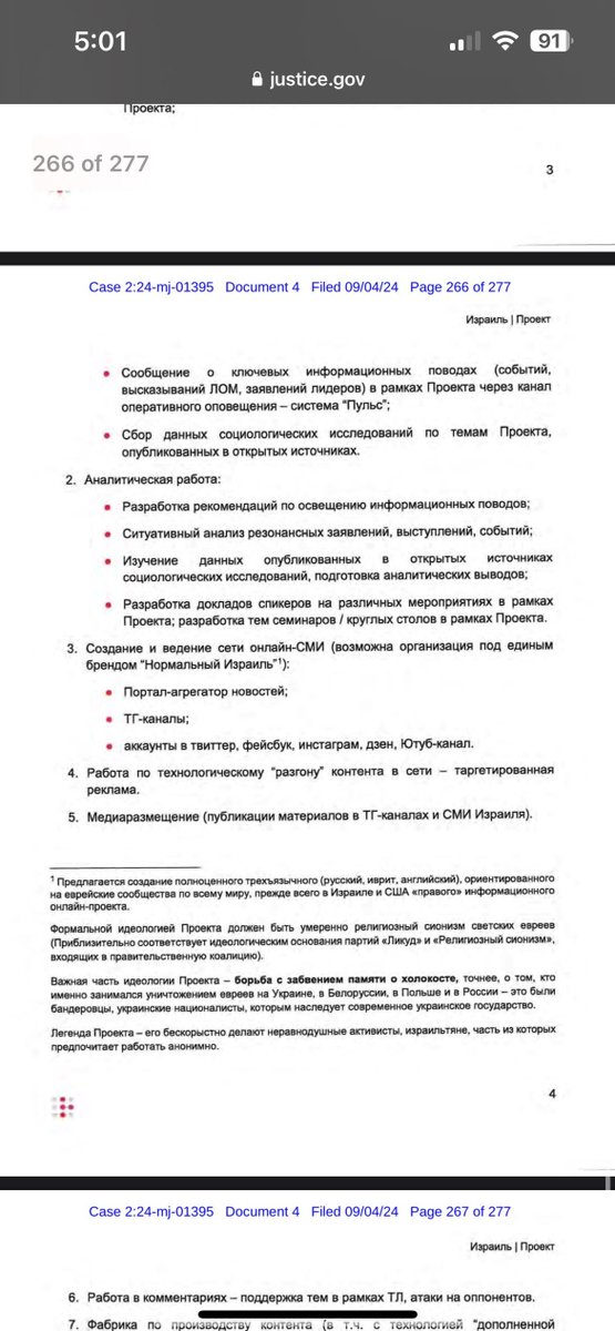 The filing includes a reference to a project specifically designed to target Jews and Israelis: "Consistent with other Doppelganger campaigns explicitly targeting the United States, this Israel-related campaign would involve the creation of a media brand, targeted advertising to spread content, the publication of articles in legitimate media, and an operation involving the widespread posting of social media comments impersonating Israelis. A separate SDA document provided an example of how to pose as an Israeli and disseminate fake articles and comments presenting an unattributed Russian narrative through comments on social media."