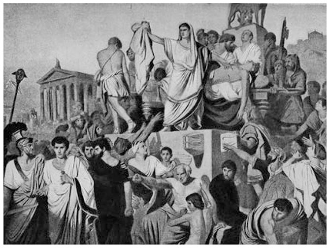 Lucius Sergius Catilina, a frustrated aristocrat, plotted to assassinate Senators and seize power.