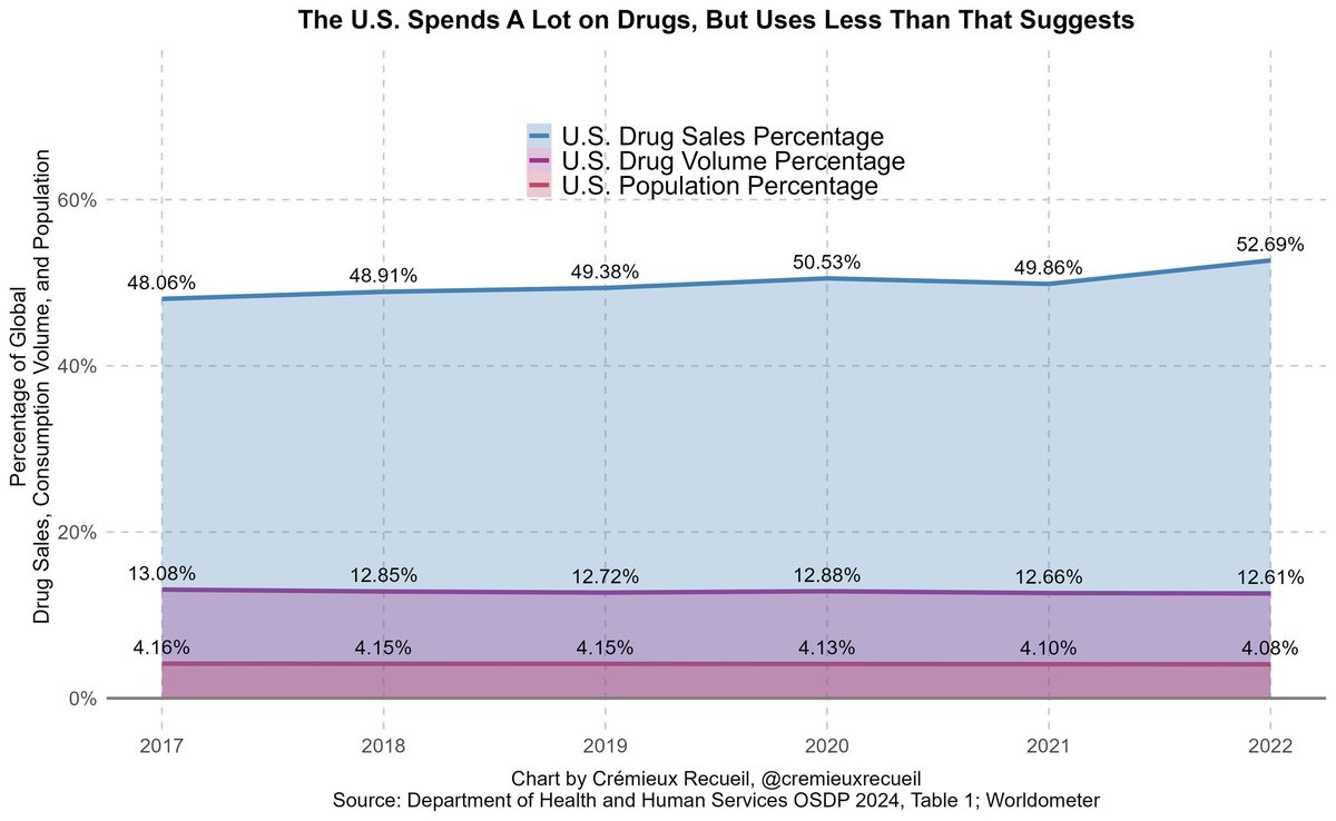 And no, America's high drug prices aren't the reason it spends so much. The main driver is consumption volume.