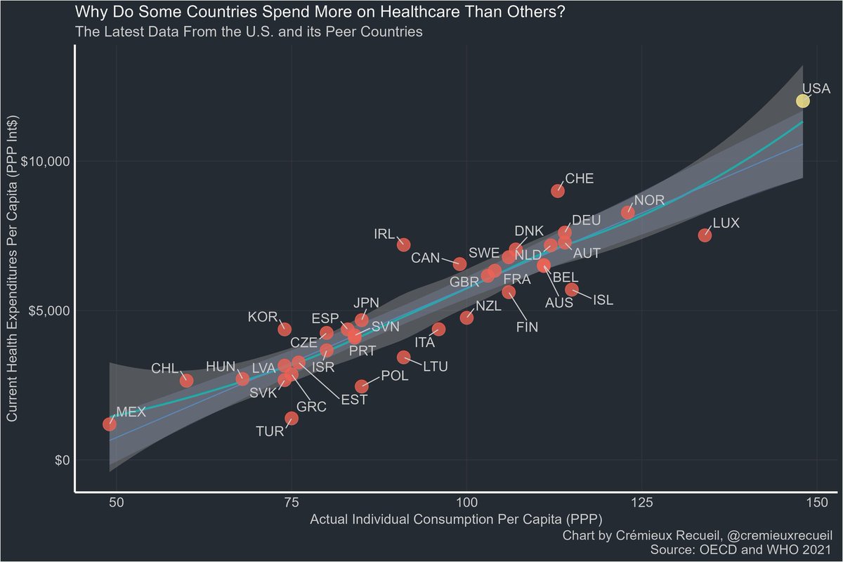 What's wild is, this isn't alarming because the U.S. is a rich country and medicine is a superior good.