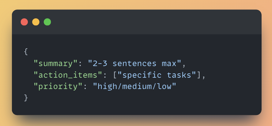 JSON makes you define exactly what you need instead of hoping the LLM guesses correctly. Text prompts like "analyze this data" leave room for interpretation & inconsistent outputs.
