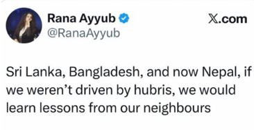 Rana Ayyub literally called for Indians to learn from "government toppling" in Sri Lanka, Bangladesh, & Nepal!