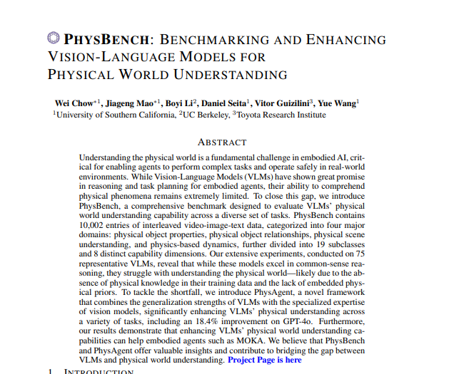To give some context to her explanation, this bechmark has 75 vision‑language models and show they still struggle with physical world understanding.