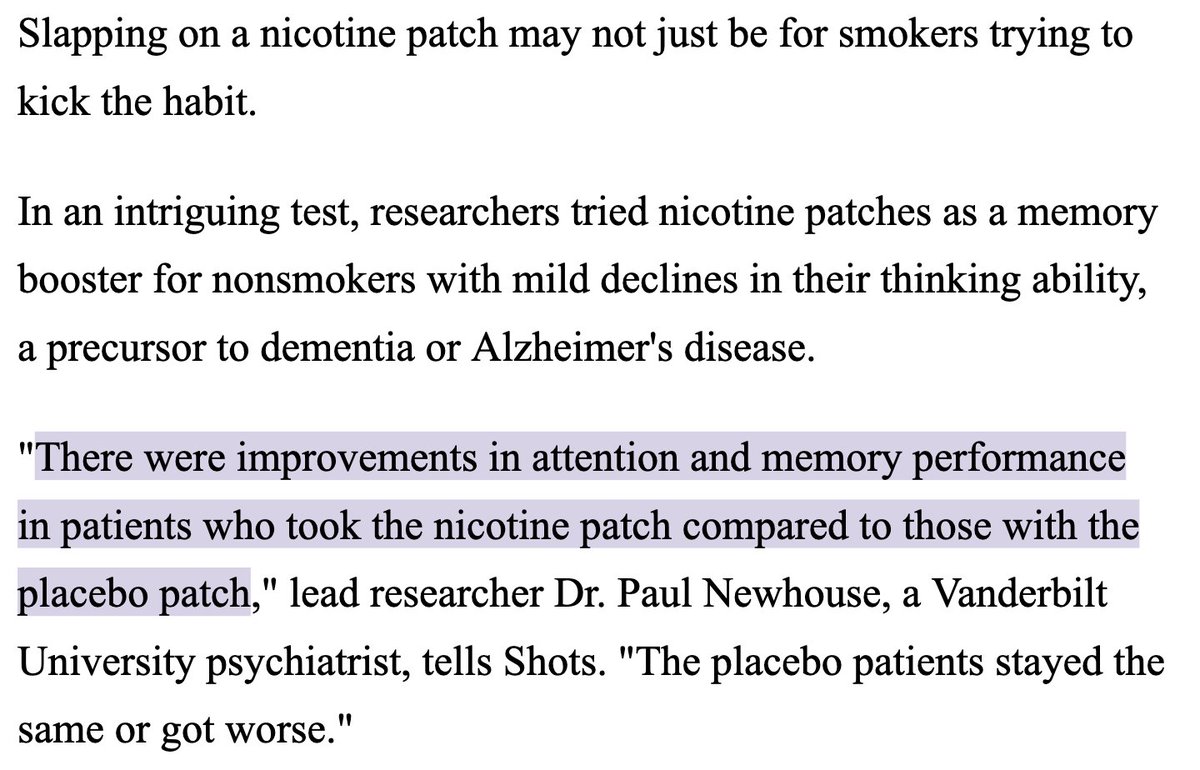 Research from Vanderbilt Center found that nicotine patches can help people with mild memory problems.
