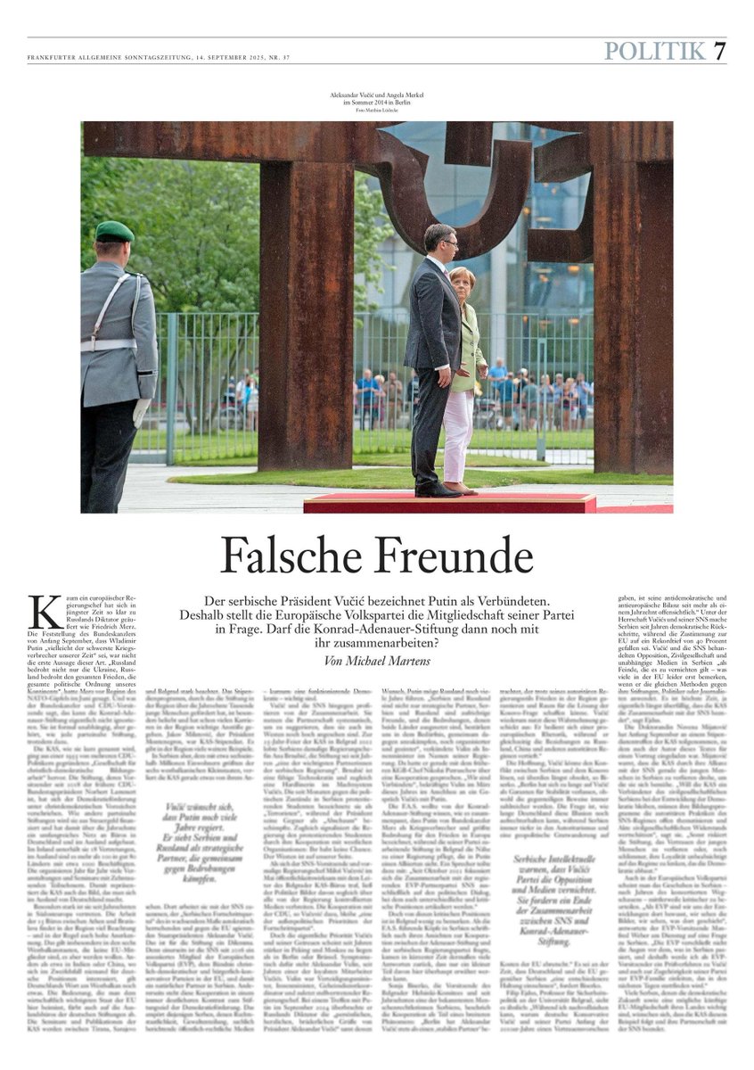 “It is time to consider whether the same might not also be advisable in the case of the Serbian Progressive Party. If such consideration leads to Belgrade recalling the values that should be binding for belonging to the EPP, even better.” (FAZ, 2020)