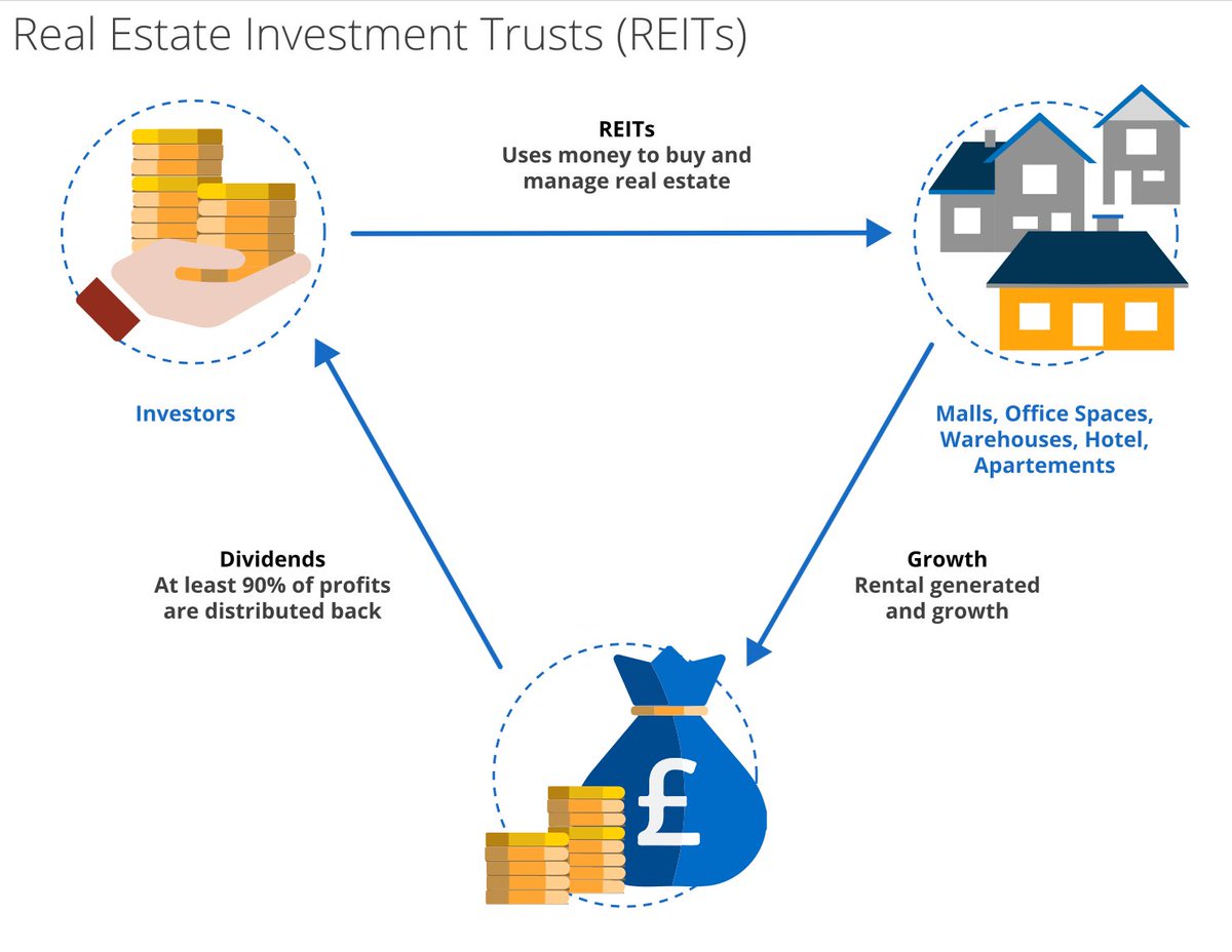You own a piece of offices, malls, apartments, without being a landlord. The 10-year average beats the S&P 500. Image