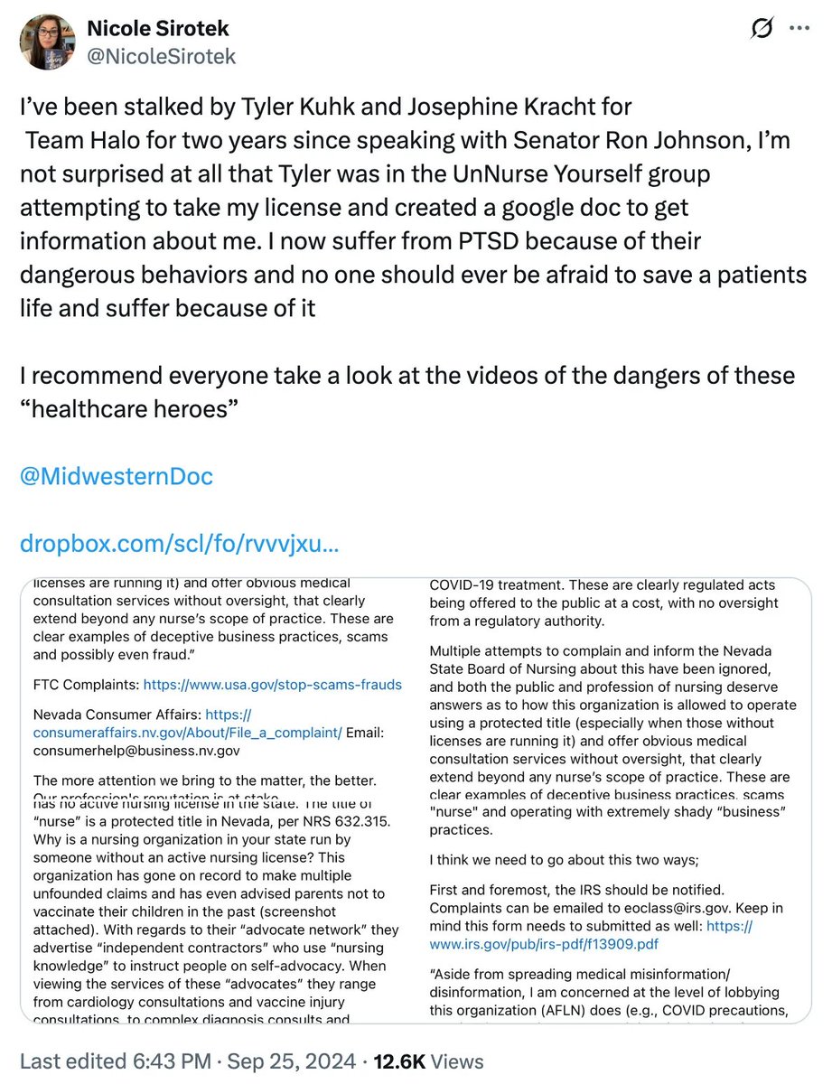 @MidwesternDoc Nurses like Nicole Sirotek were targeted by Team Halo for the terrible crime of testifying about hospital abuse of COVID patients.