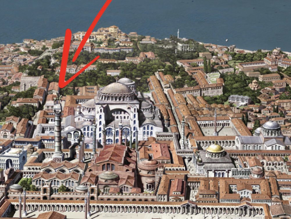 The scale was an issue when it came to moving it, and mounting it atop a column. The statue originally was of Theodosius, placed in the Forum of Theodosius.