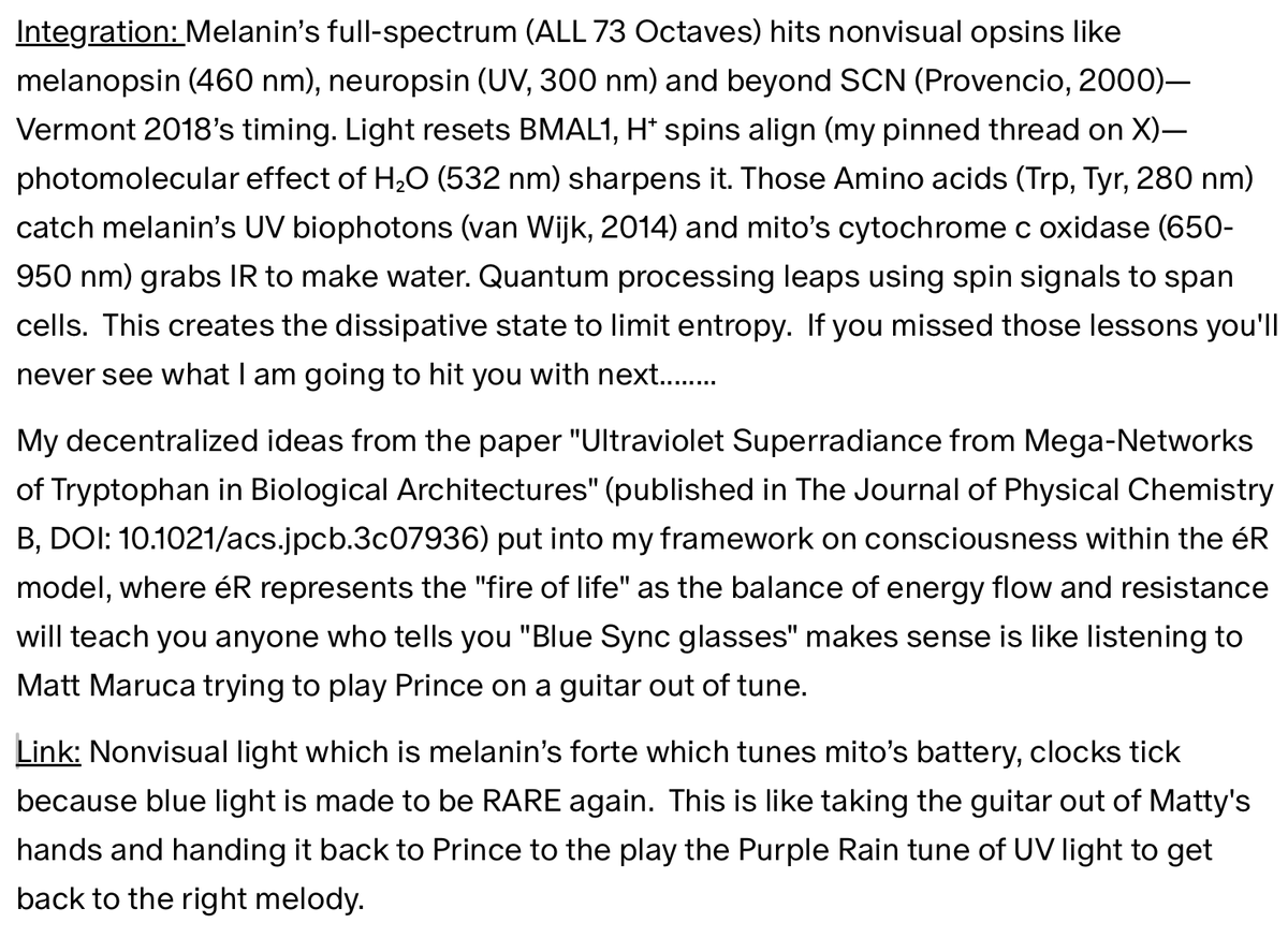 Biology tie-in: It's why exercise feels good in sunlight in moderation but wrecks you if overdone under blue light in agym it is because éR rises, signaling "back off and recover." Blue light allows deuterium to flow into the mitochondria and the KIE takes over.