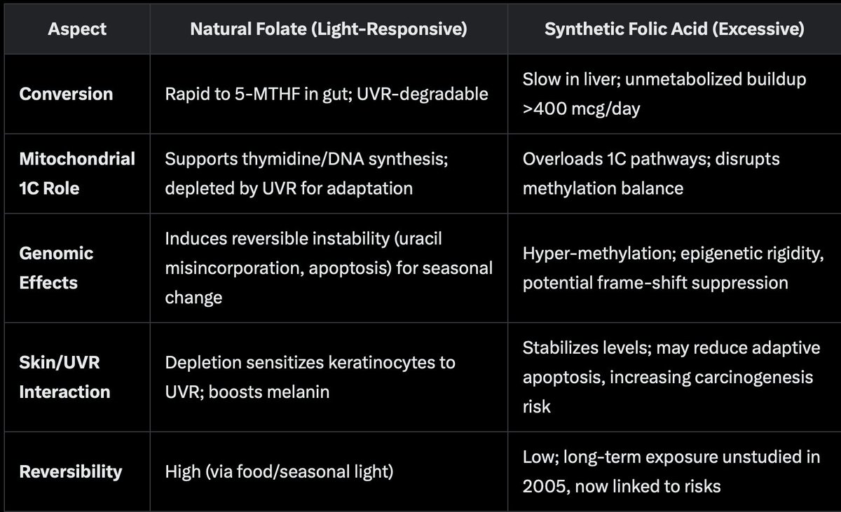 Did you know that in humans, UVR depletes folate in skin and blood, inducing S-phase arrest, affecting uracil misincorporation (frame-shift mutations), and sensitizing apoptosis in keratinocytes. This isn't "damage" but a permissive environment for seasonal phenotypic changes, e.g., increased melanin production to protect folate stores. When you understand the photorepair mechanism, you will see this is how humans can block the DoD and BigHarma death mechanism from uracil replacement induced by the jabs. @MdBreathe None of the COVID experts have this sophistication. They are still pushing detox answers when it is crystal clear that redox biology is the path for the Savage trying to stay alive and away from disease.