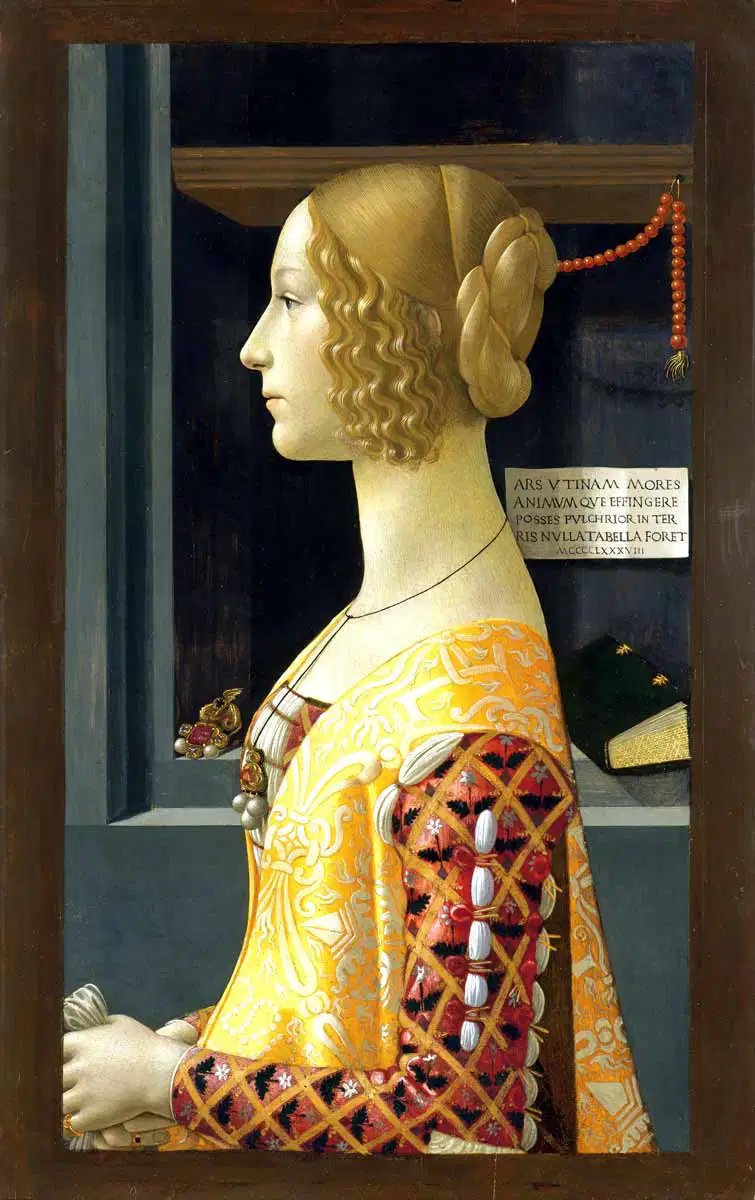 Ghirlandaio’s Portrait of Giovanna Tornabuoni (1488) shows restraint.