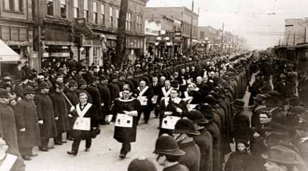 They carried black flags showing Lucifer crushing St. Michael the Archangel.