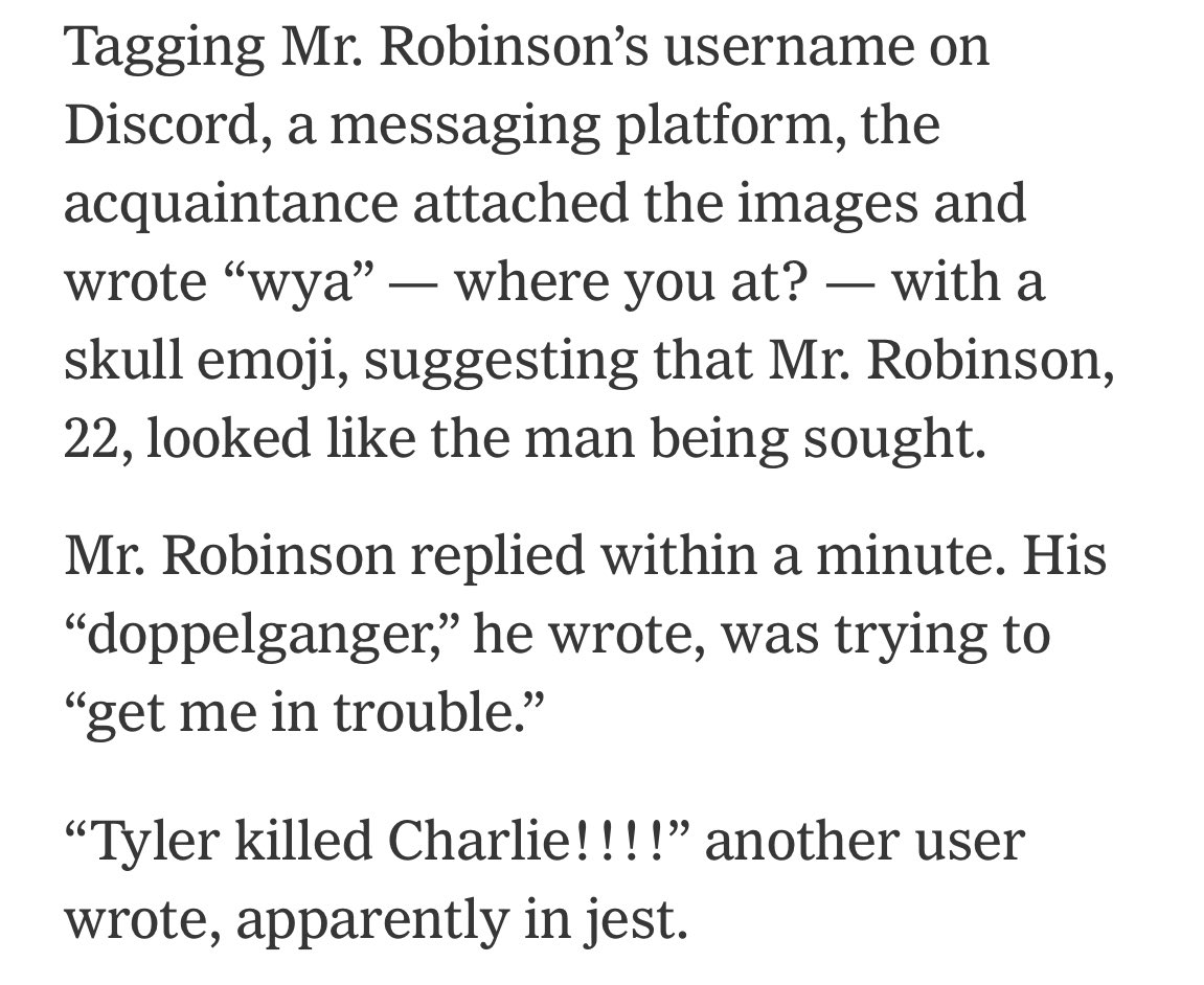 But, when police first released the images of a suspect, one of Tyler’s group chat with gaming friends from back in highschool messaged him, and he replied - AFTER the shooting.