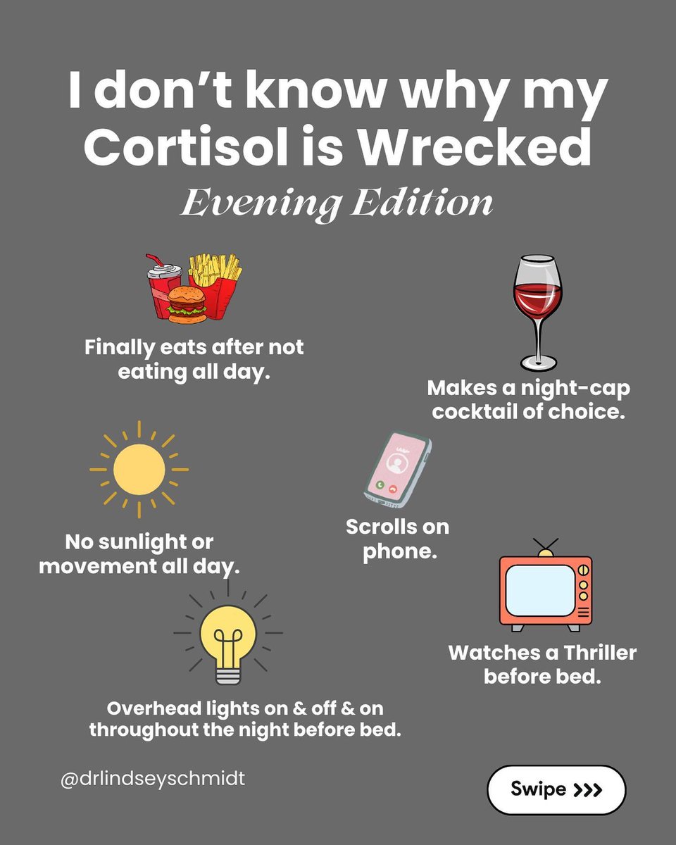 Cortisol should drop at night for deep sleep.