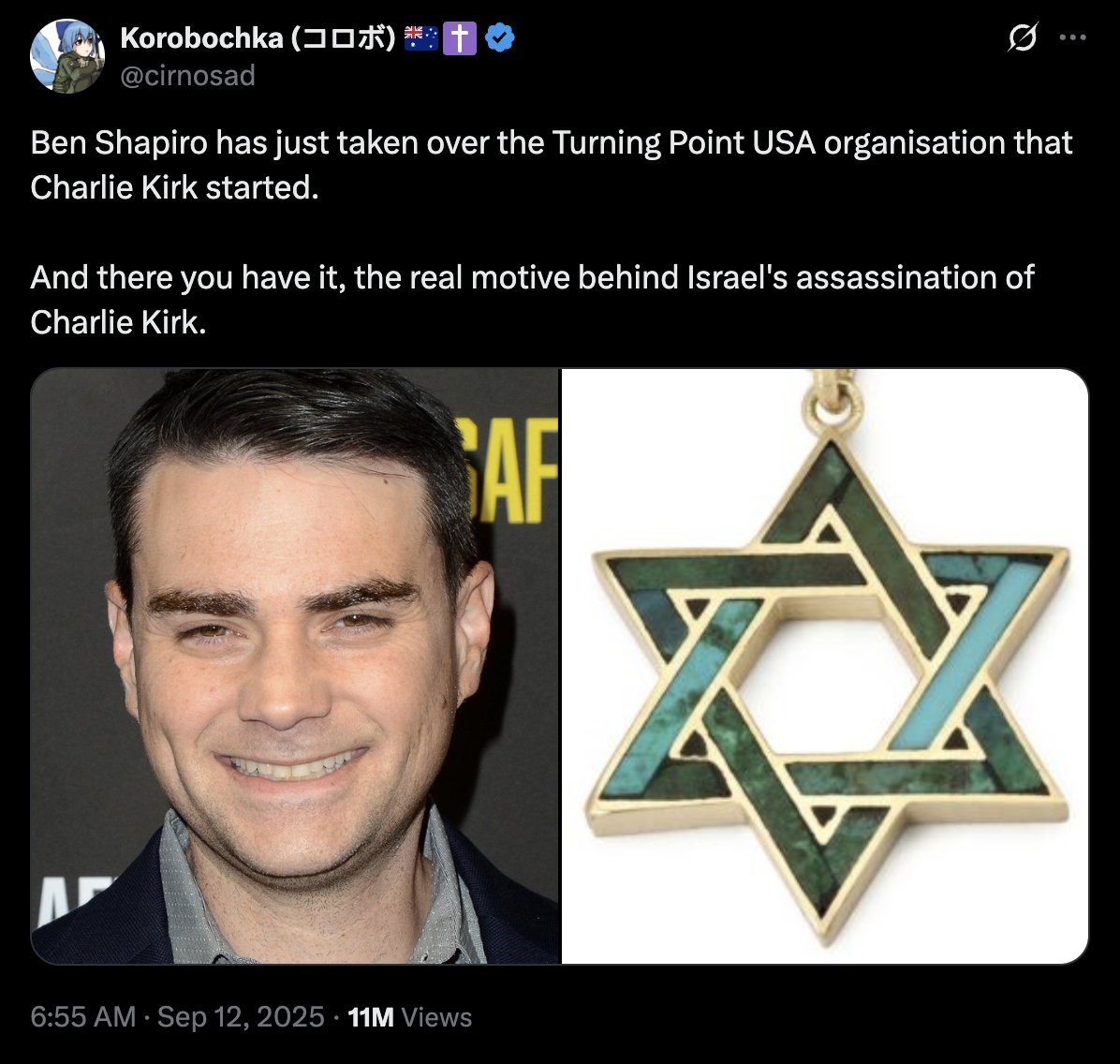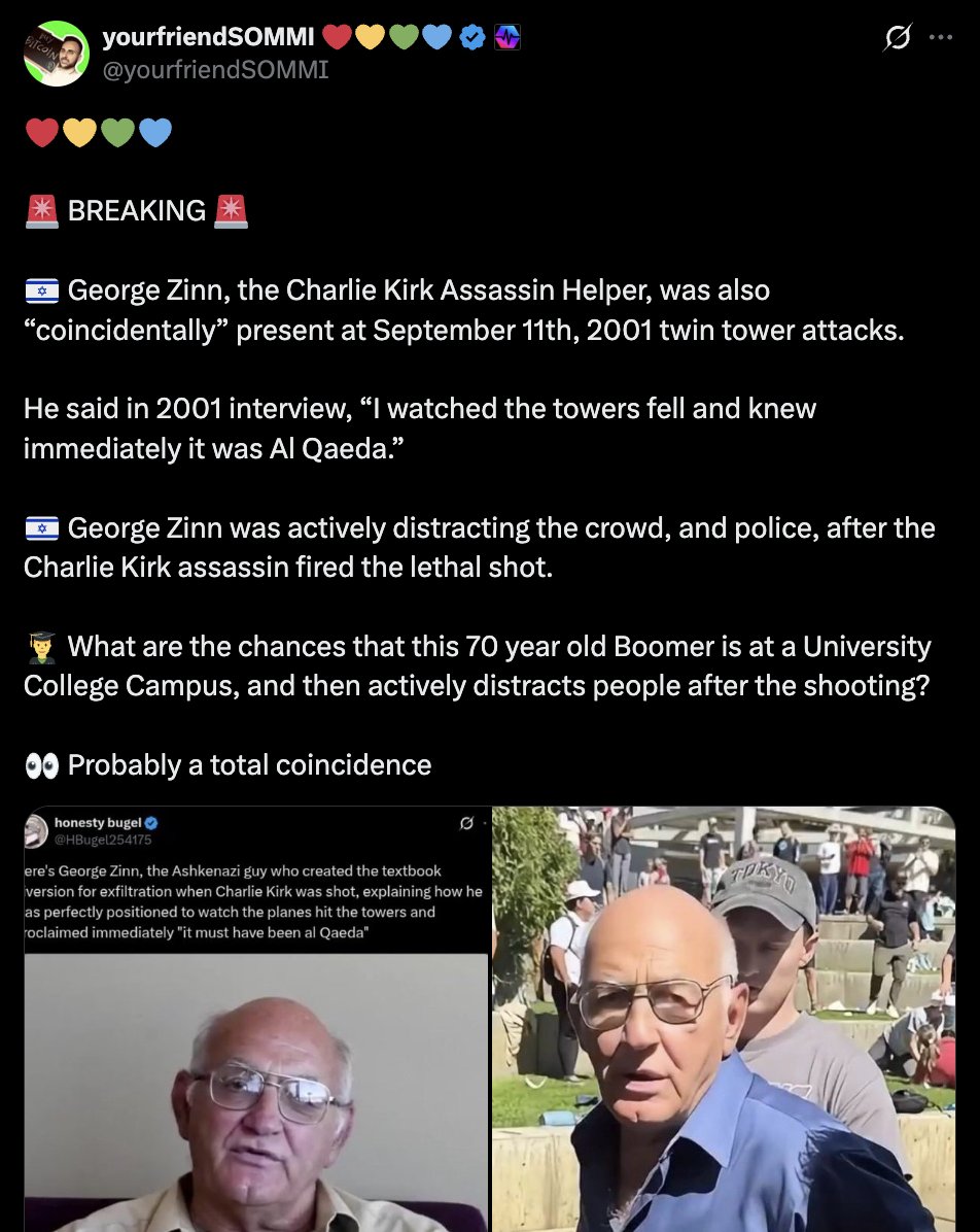 6/ And of course, the date: Kirk’s murder fell near 9/11’s anniversary. For some, that alone proves Israel’s guilt. Because why stop at one antisemitic trope when you can stack them all?
