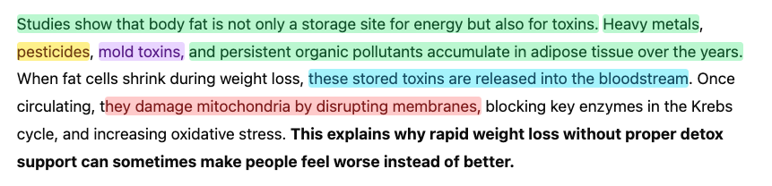 When you lose weight, they flood your bloodstream and overwhelm mitochondria: