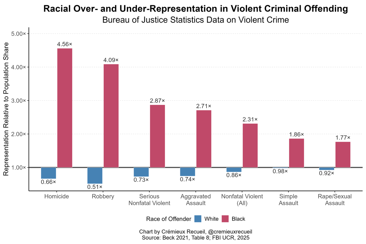 - In cities like Chicago, Atlanta, D.C., Portland, and basically everywhere else, homicide victims and offenders tend to have long rap sheets (cremieux.xyz/p/minority-rep…)
