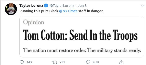 Almost every NYT journalist posted on social media that this editorial put black NYT staff in danger