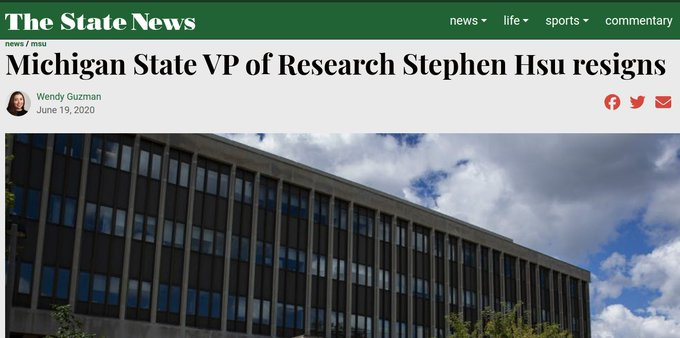 Hsu lost his position at MSU for committing the crime of science (he shared data on racial intelligence differences).