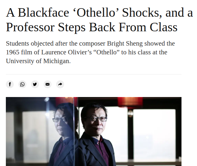 Professor Bright Shang was suspended for showing the 1965 film Othello.