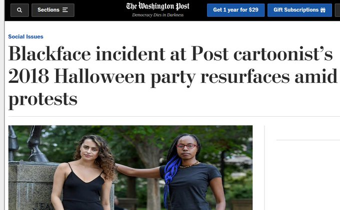 Sue Schafer was a reporter at the Washington Post who lost her job for wearing blackface specifically to make fun of people wearing blackface.