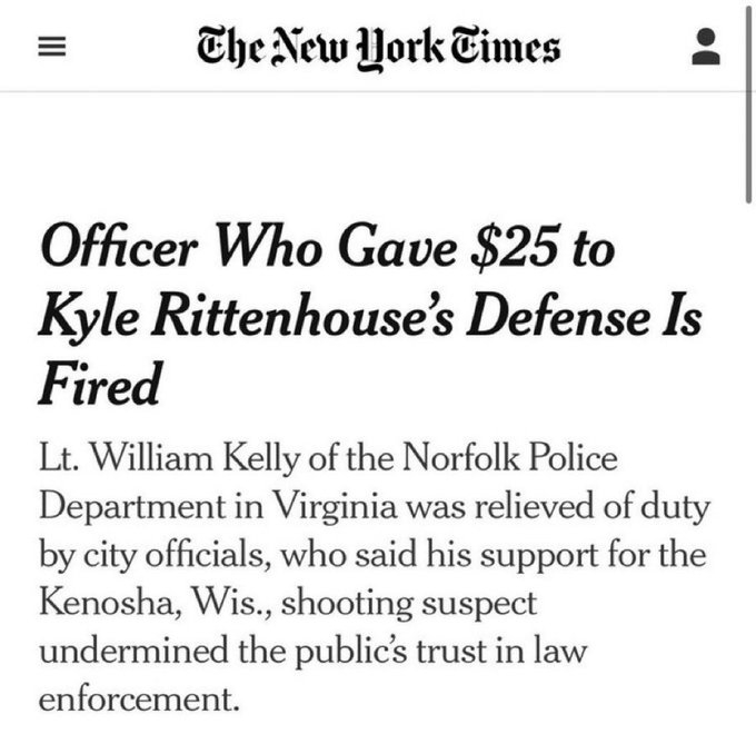 Kelly lost his job as a police officer for donating $25 to Kyle Rittenhouse.