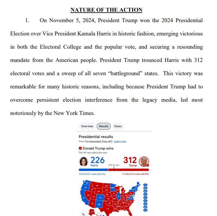 It says he "overcame persistent election interference from legacy media" but that isn't even a legal claim itself.